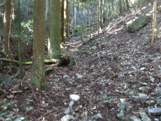 | 市道のヘアピンカーブの参道入口 | 道跡 |