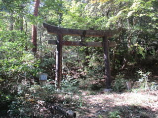 林道を横切り祠前に着いた。池田富士山頂は4回目。 |